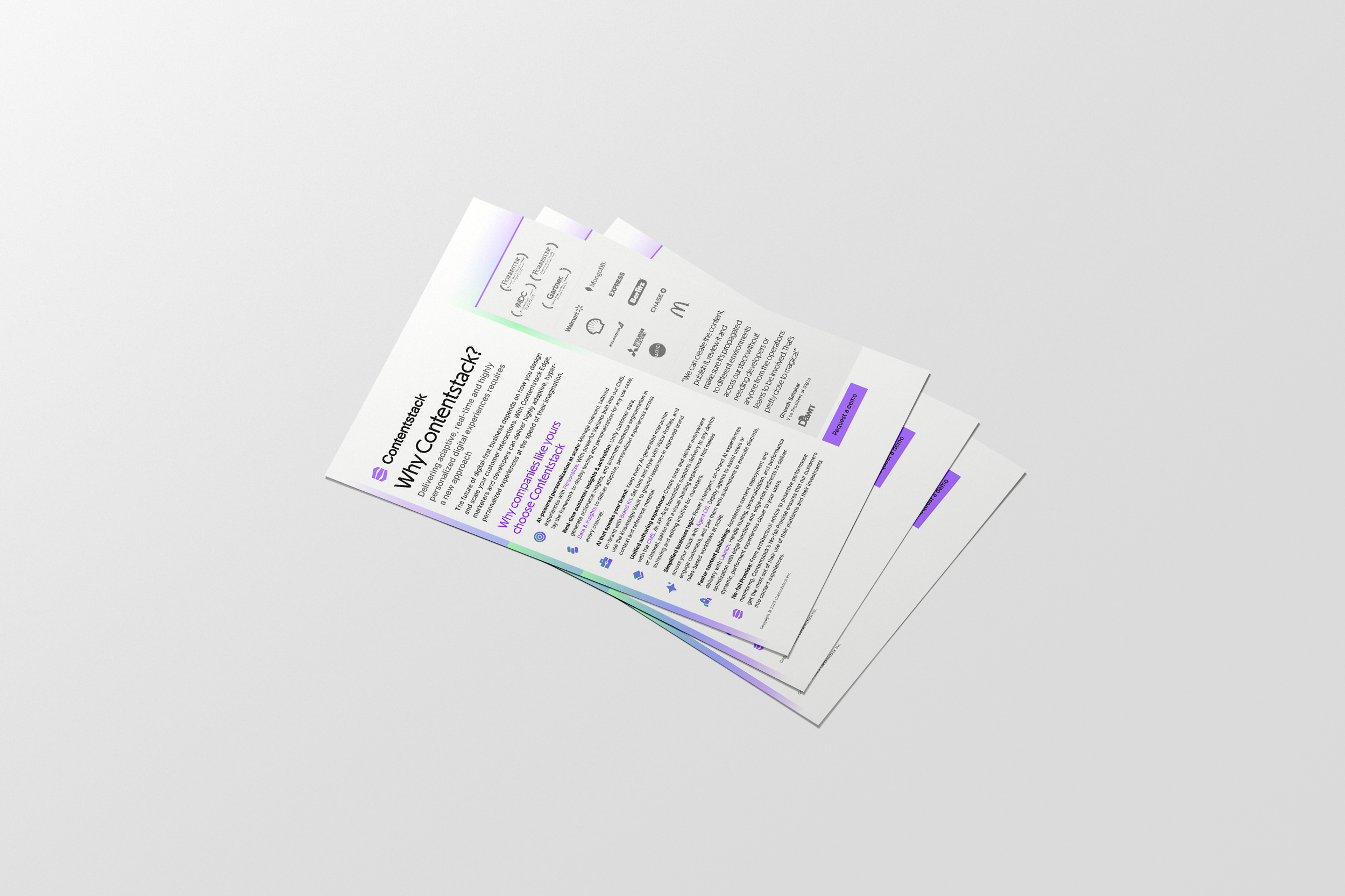 Partnered with cross-functional teams at Contentstack to design for events and campaigns, translating ideas into cohesive, brand-aligned visuals. Created a range of digital and marketing assets including ad campaigns, trade show materials, one-pagers, white paper templates, slide presentations, and website graphics, ensuring everything felt consistent and worked seamlessly across touchpoints.