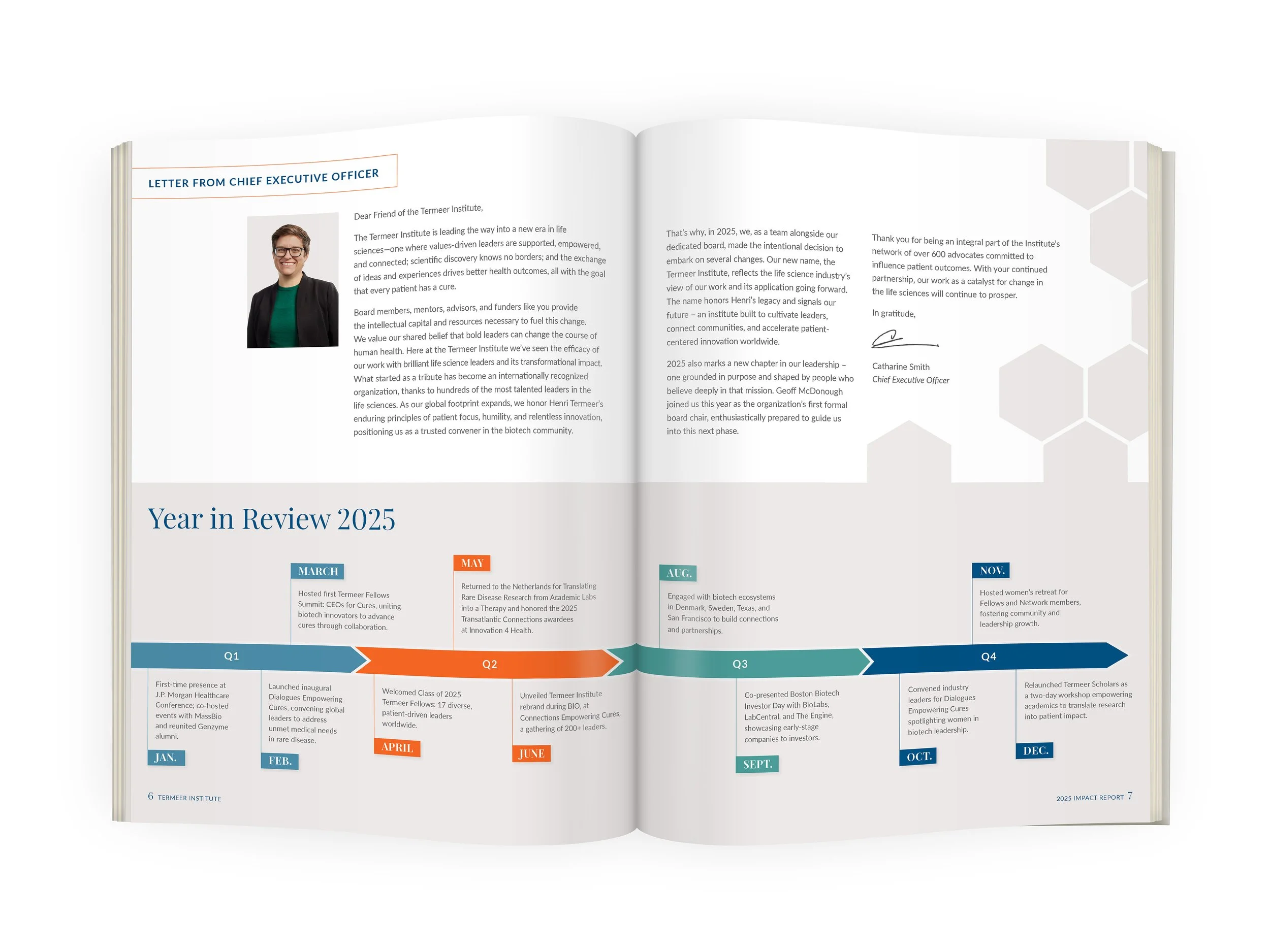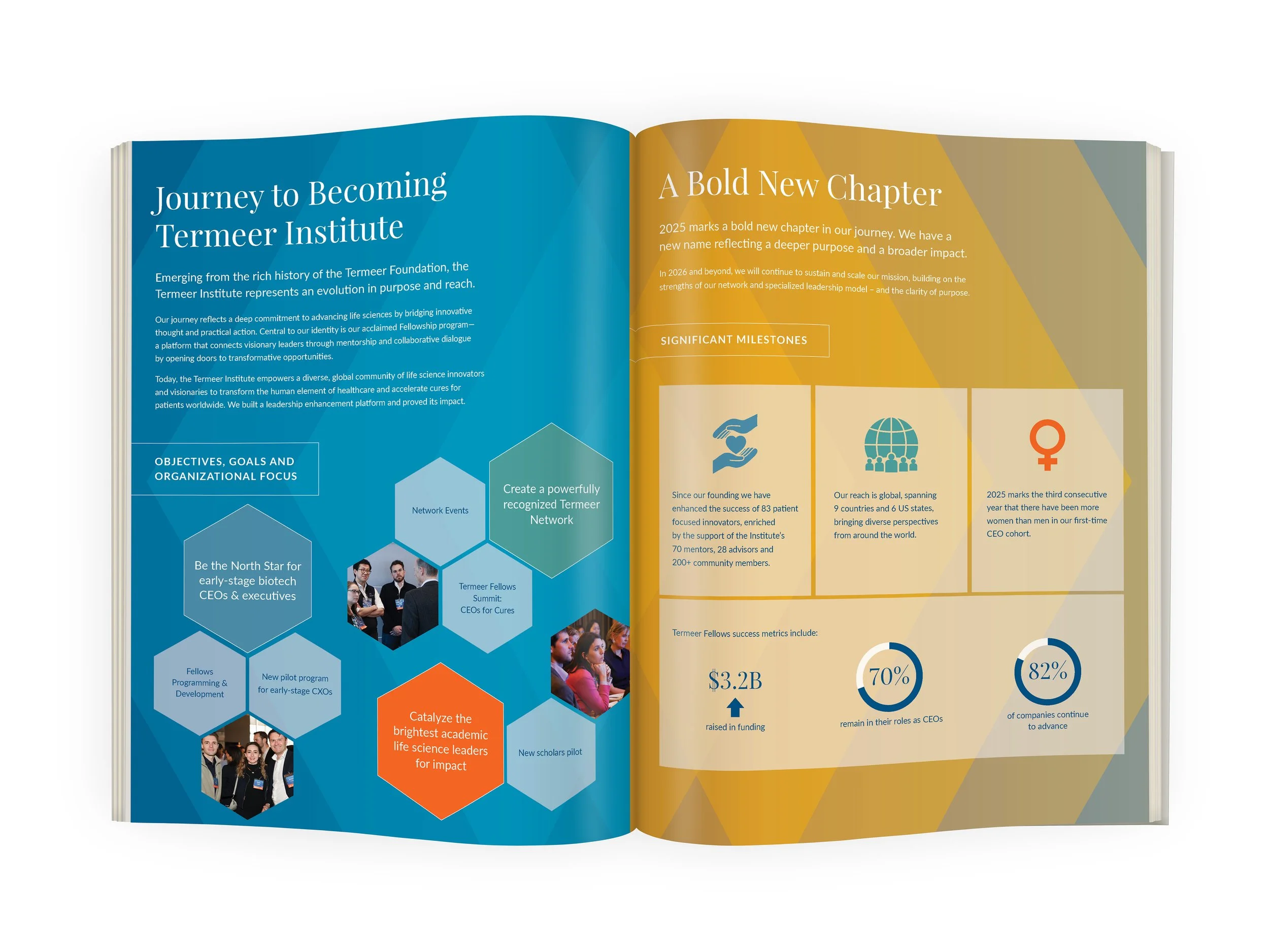 Building on this refreshed identity, I developed a range of materials including event design, brochures, presentations, and the annual Impact Report. The work maintains a clean, contemporary aesthetic while supporting the Institute’s mission to connect and empower healthcare innovators in pursuit of cures for every patient.